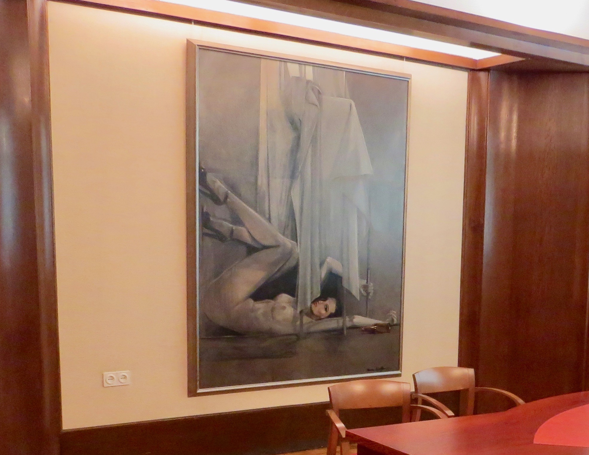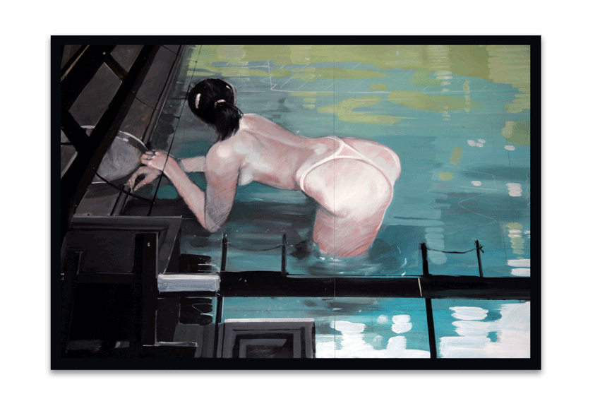 Serveerster in zwembad (orgineel in lijst)( H 140 x B 222)